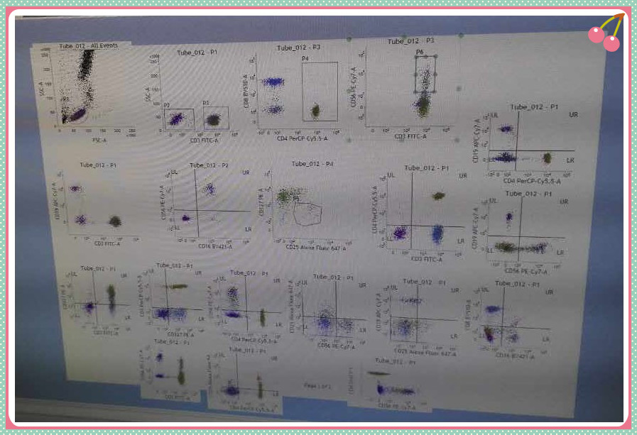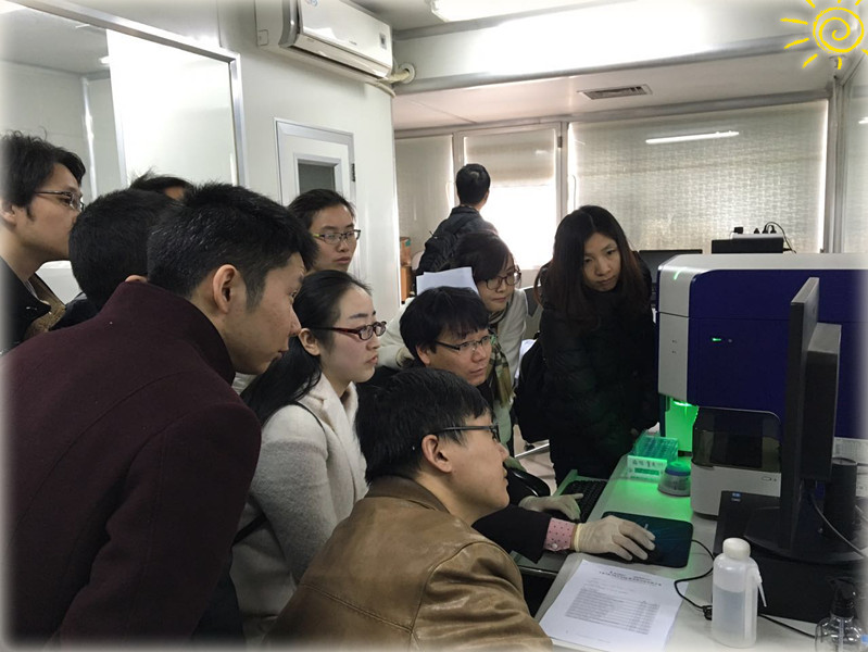最后為流式儀器檢測,由流式儀器平臺陳老師為上機學員講解上機測試過程以及數據分析。陳老師耐心細致的講解,從儀器的初始設置到電壓補償的調節,從同型對照及陰性陽性界限的設置,FMO的劃門設置到最終的數據分析,深入淺出,循循善誘,學員們都紛紛表示收獲頗豐。