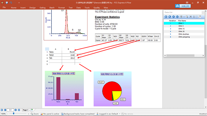 ? 演示內容:細胞周期數據的分析,關于細胞周期各個參數的調用,統計學圖表的建立