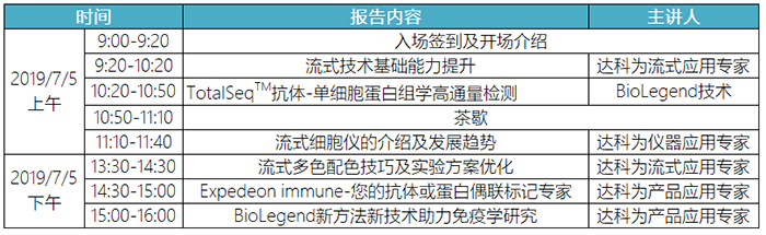 達(dá)科為生物公司作為國內(nèi)一流的生物試劑供應(yīng)商,多年來在全國各地免費(fèi)舉辦了百余場流式培訓(xùn)班,取得了熱烈的反響和良好的反饋。此次流式培訓(xùn)班將于2019年7月5日-7月7日舉辦。