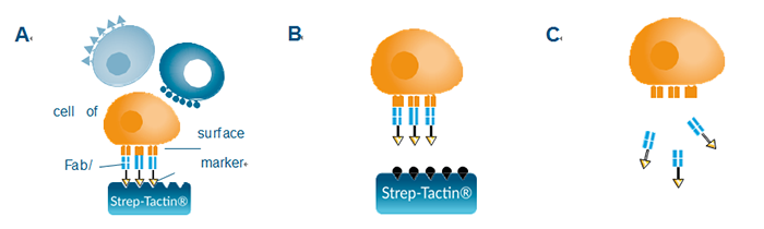 Streptamer?涵蓋了從細胞分選、細胞擴增到細胞染色的一系列完整細胞研究產品線。事實上,Streptamer?的這種可逆機制是依賴于IBA專利的Strep-tag?技術,從而經過多重陽性分選,可獲得用于后期擴增或染色的目的細胞。