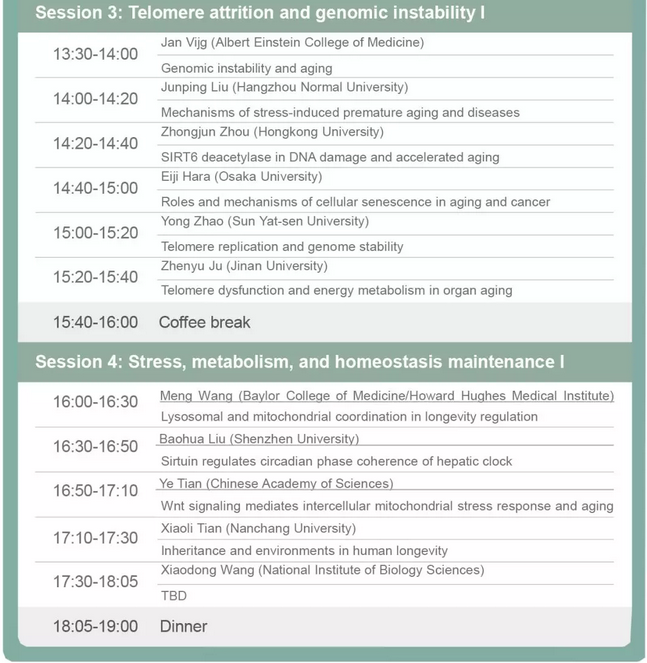 大會將邀請國際衰老研究相關領域的優秀級科學家、專家學者及醫學工作者,圍繞“衰老的機制和干預”這一主題,針對“衰老機制”,“衰老與再生”,“代謝與衰老”,“衰老的遺傳和表觀遺傳機制”,“衰老的標記物”,“衰老及衰老相關疾病的干預”等科學問題進行廣泛深入研討,旨在推動科學應對人口老齡化,合作研發防控過早老化及相關疾病的舉措。