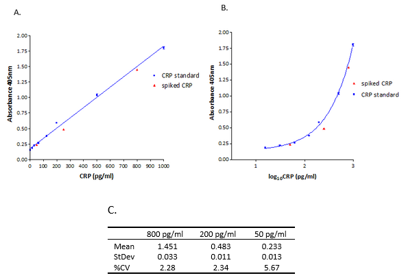 結果:對于所有稀釋度,計算的CRP量在實際值的10%以內。