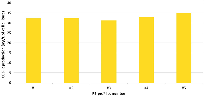 圖5.使用不同批次PEIpro?生產(chǎn)蛋白的得率具有極佳的重復(fù)性