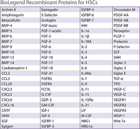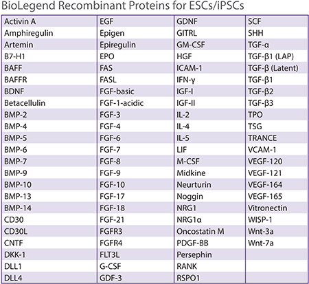 BioLegend提供多種重組蛋白,可幫助維持胚胎干細胞、誘導多能干細胞、造血干細胞、間充質干細胞和神經干細胞的多能性或誘導它們分化。下面我們一起了解一下重組蛋白在幾種干細胞中的應用。