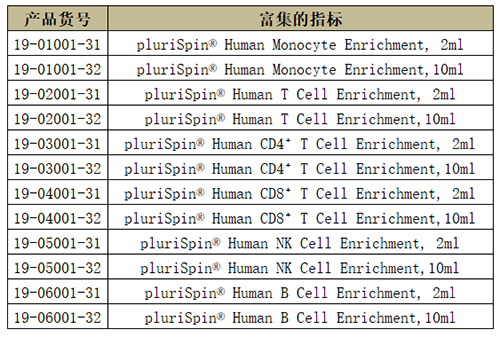 針對少量全血樣本通過淋分液分離PBMC時細胞損失太多或分離效果不好時,這里給大家分享pluriSelect另一口碑不錯用于全血樣本的富集和耗竭產品,只需要1ml全血樣本與對應指標的產品按照一定的體積比孵育,然后進行break off離心方式就可以達到對應初步的細胞富集和耗竭效果。能保證了后續(xù)要研究細胞的得率和純度,同時獲得的細胞純凈不帶磁珠。適合的樣本類型包括:PBMC, Buffy Coat, Cord Blood, Bone Marrow, Primary Cell Solution。原理非常簡單實用也讓小編腦洞大開。