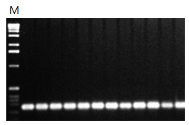 △Fig 2 .使用FailSafe?PCR PreMix K擴(kuò)增Fig 1中的人的ApoE gene片段。M:molecular marker。